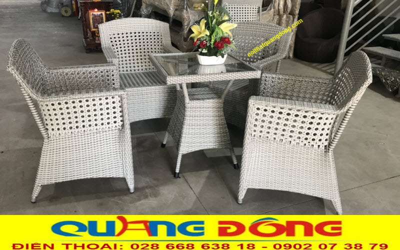 - Độ bền: Bàn ghế mây nhựa của công ty TNHH NỘI THẤT QUANG ĐÔNG có tuổi thọ 5 năm đến 15 năm (bởi được sản xuất bằng nhựa PE keo zin 100% có chất kháng UV tia cực tím)