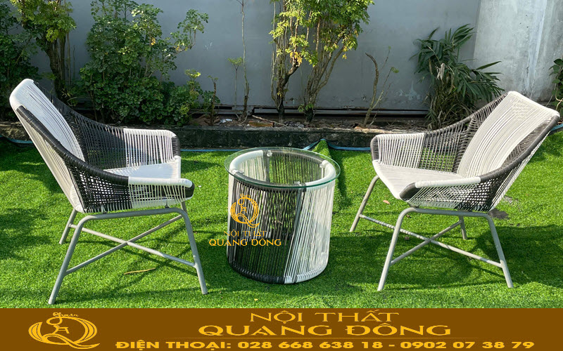Chất liệu: Khung bằng thép sơn tĩnh điện (bạn cũng có thể đặt bằng inox hoặc nhôm) đan sợi nhựa rattan giả mây cao cấp có chất kháng UV tia cực tím chịu nắng mưa