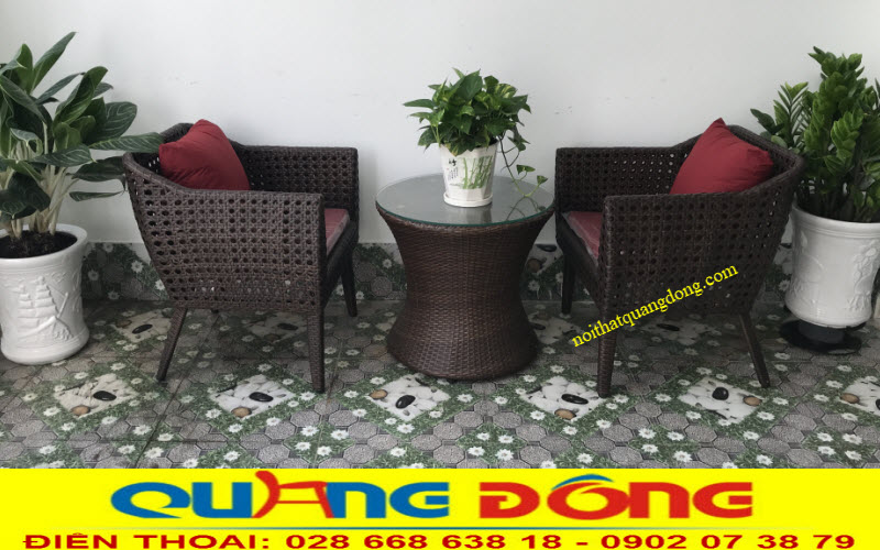Mẫu bàn ghế giả mây QD-268 đi kèm bàn tròn nhỏ xinh đẹp cho ban công sân vườn