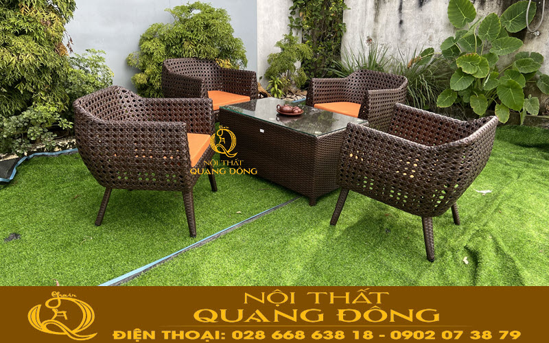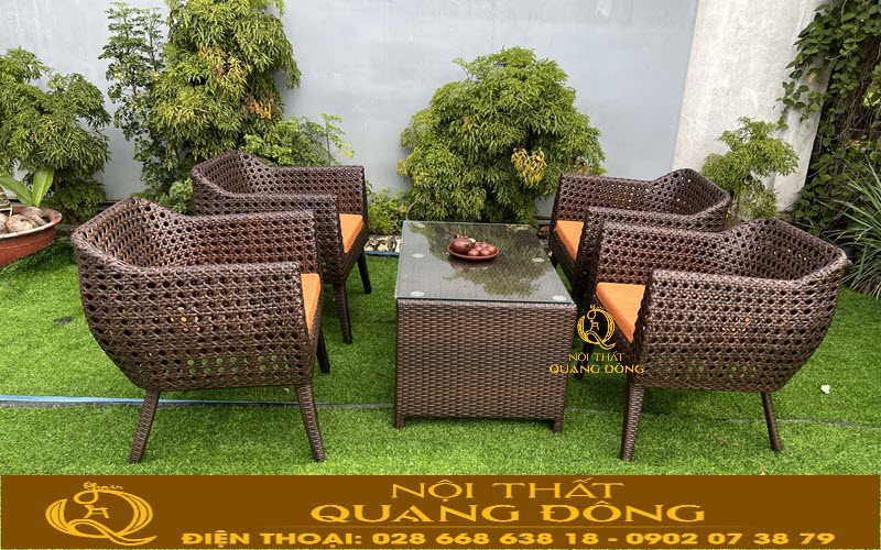 Không gian nội thất thêm tiện nghi sang trọng có sự góp mặt bộ bàn ghế giả mây QD-268