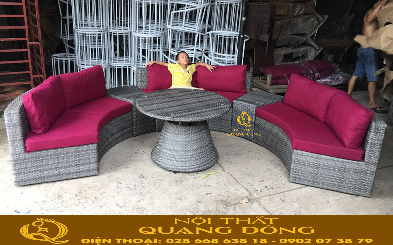 Sofa giả mây QD-605 thiết kế kiểu dáng hình bán nguyệt sáng tạo