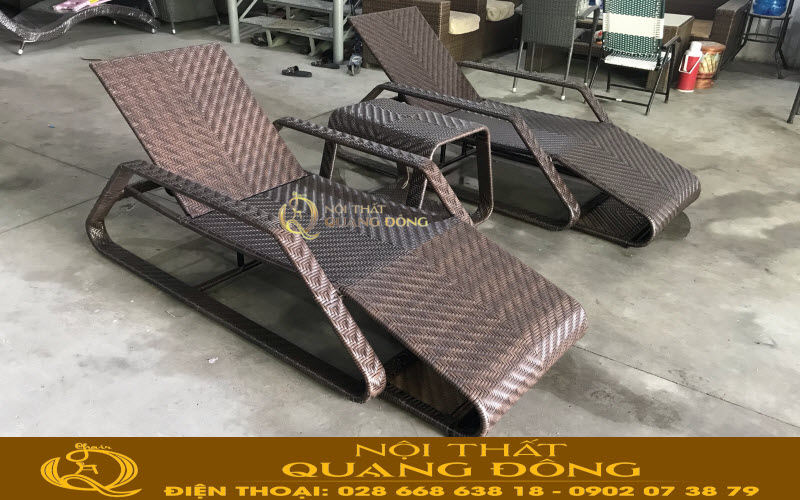Mẫu ghế nằm hồ bơi QD-591 màu nâu giả gỗ được ghi hình tại xưởng của công ty tnhh Nội Thất Quang Đông