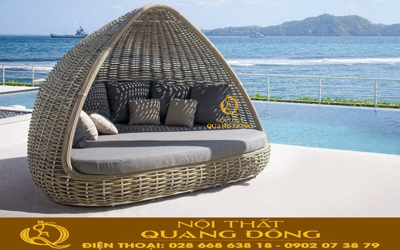 Giường tắm nắng mây nhựa QD-545 thiết kế dáng hình chóp độc đáo