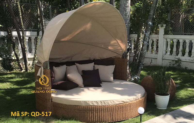 Mẫu giường tắm nắng giả mây QD-517 mang phong cách tự nhiên, nhẹ nhàng bởi màu sắc mây nhựa đan chính phẩm keo zin