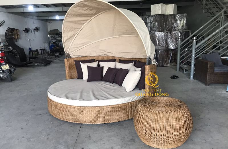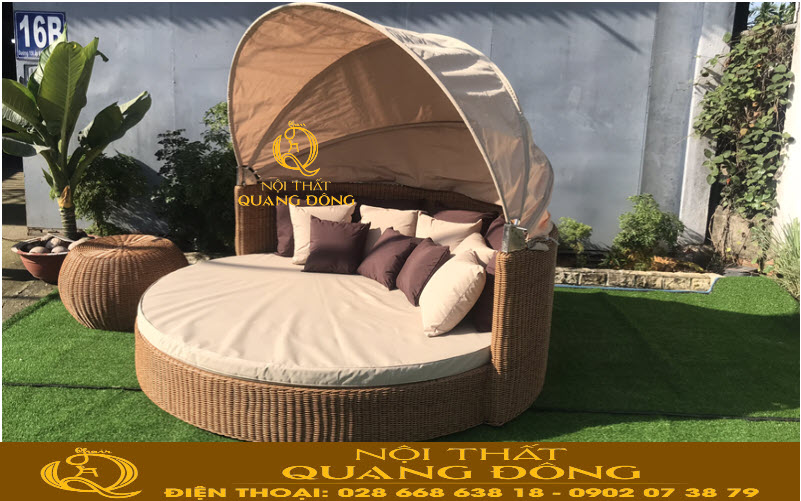 Mẫu giường tắm nắng nghệ thuật có mái che đan nhựa giả mây