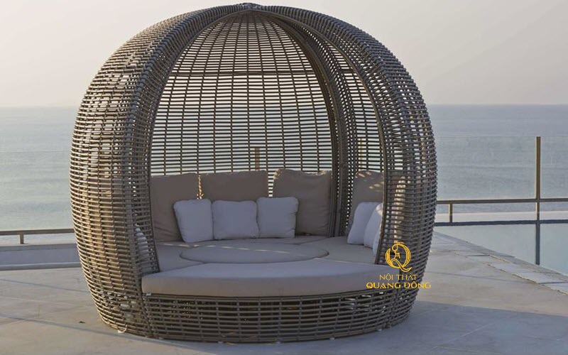 Chất liệu: Khung bằng thép sơn tĩnh điện (bạn cũng có thể đặt bằng inox hoặc nhôm) đan sợi mây nhựa giả mây cao cấp có chất kháng UV tia cực tím chịu nắng mưa.